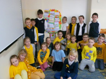 21 listopada obchodziliśmy w naszej szkole Światowy Dzień Życzliwości i Pozdrowień. W klasach rozmawialiśmy jak ważna jest dla człowieka potrzeba szacunku, serdeczności, uśmiechu, dlaczego ważne jest mówienie dobrych słów i niesienie bezinteresownej pomocy innym. W szkole dominował kolor żółty – kolor optymizmu i radości. Przygotowana została gazetka na temat życzliwości i uśmiechu. Uczniowie przygotowali Drzewka Życzliwości, gdzie na kolorowych listkach każdy mógł napisać coś miłego dla drugiej osoby. Drzewka szybko wypełniły się życzliwymi i miłymi słowami do innych osób. W każdej klasie wybraliśmy Króla i Królową Życzliwości. Mamy nadzieję, że życzliwość będzie nam towarzyszyła nie tylko z okazji święta, ale każdego dnia.