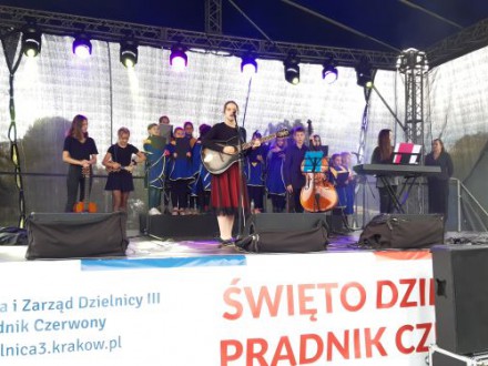 Na plenerowej scenie KS Wieczysta zaprezentowali się soliści: Agnieszka Argasińska z klasy 7a, Izabela Janowicz z klasy 6e, a także Chór szkolny oraz Zespół instrumentalny. Nie zabrakło też pokazu tańca wykonanego przez Julię Szramik z klasy 6d wraz z jej tanecznym partnerem.