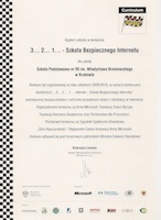 - Konkurs "3... 2... 1... Bezpieczny Internet na Start!". Nasz szkoła złożyła sprawozdanie z przeprowadzenia zajęć z wszystkimi uczniami klas IV - VI. Uczestniczymy również w II edycji tego konkursu.
