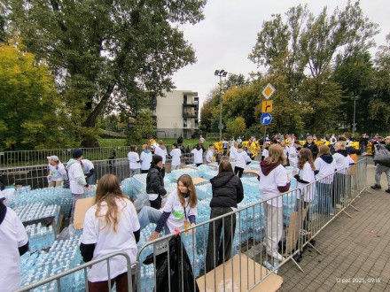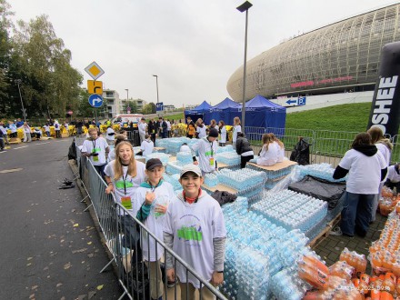 Uczniowie z klas 7 i 8 w ramach szkolnego wolontariatu pomagali w organizacji strefy mety znajdującej się przy Tauron Arenie w Krakowie.