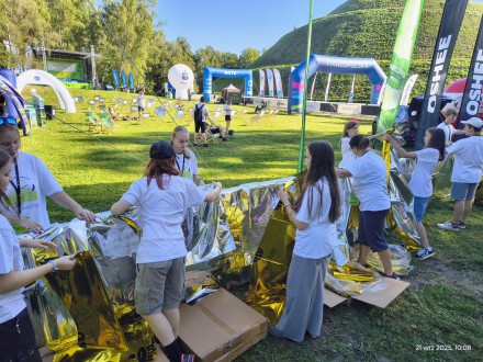Ich zadaniem było wręczenie medalu, podanie wody lub izotoniku oraz folii termicznej dla każdego biegacza kończącego zmagania z górska trasą - a tych osób było ponad 3000!