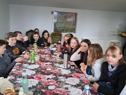 5 kwietnia klasy 5d i 5f wybrały się do zaprzyjaźnionej Zagrody Edukacyjnej "Pszczółki" w Niezwojowicach na warsztaty oraz śniadanie wielkanocne.