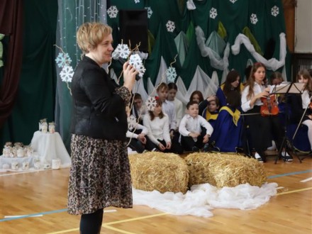 Pani Dyrektor podziękowała za przygotowanie występu i złożyła wszystkim życzenia świąt pełnych ciepła, radości i pokoju.