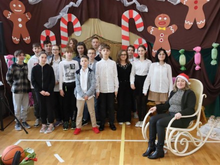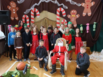 W dniu 22 grudnia 2022 r. uczniowie klasy 4b oraz 4d opowiedzieli swoim kolegom świąteczną historię, dzięki której wprowadzili całą społeczność szkolną w magiczny bożonarodzeniowy czas. W tej opowieści nie zabrakło świętego Mikołaja, dzielnych reniferów i radosnych elfów, którzy przypomnieli dzieciom, że w święta nie chodzi tylko o prezenty. Na tle wspaniałej świątecznej scenografii młodzi aktorzy opowiedzieli o staropolskich bożonarodzeniowych tradycjach i wróżbach. Występy czwartoklasistów pięknie uzupełnił chór szkolny, który przy akompaniamencie Zespołu Instrumentalnego, wykonał tradycyjne polskie kolędy.
