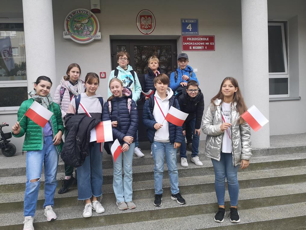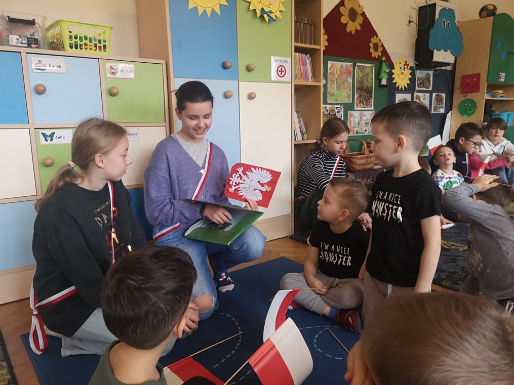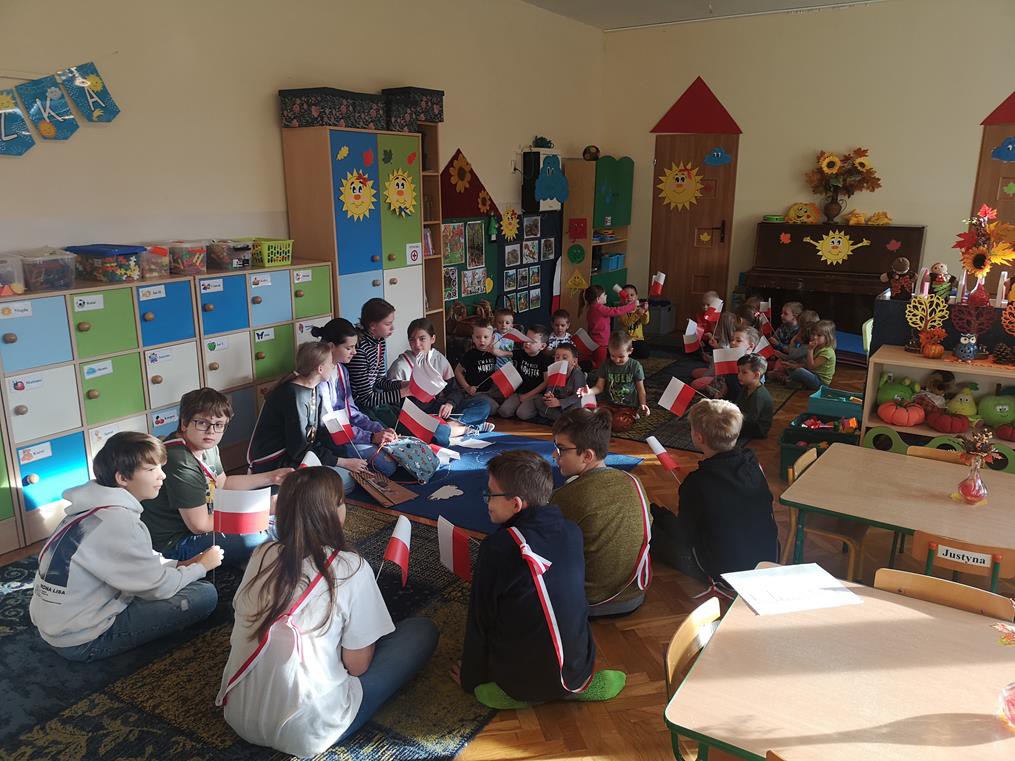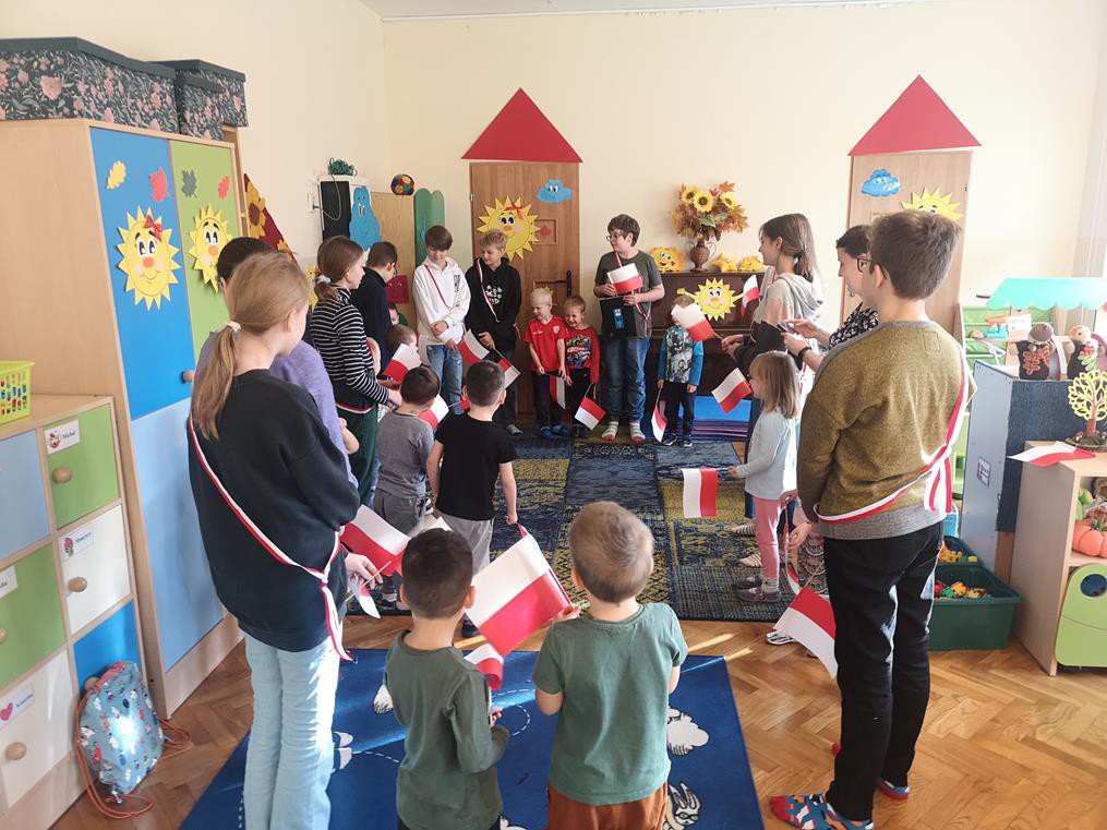 W ramach współpracy z Ośrodkiem Edukacji Obywatelskiej oraz Urzędem Miasta Krakowa, uczniowie klas 6b oraz 6c wzięli udział w programie pt. „Biało-czerwona dla przedszkolaka.” Celem projektu była integracja uczniów z przedszkolakami. Dzieci ze szkoły podstawowej przygotowały i przeprowadziły zajęcia, na których przestawiły i omówiły znaczenie symboli narodowych. Młodsi koledzy mieli okazję dowiedzieć się jakie są najważniejsze symbole narodowe, co oznacza ich kolorystyka, jak również dowiedzieli się jaką postawę należy zachować w czasie śpiewania hymnu państwowego. Na zajęciach nie zabrakło licznych gier i zabaw integracyjnych, zagadek oraz quizów. Nie ulega wątpliwości, że był to dla wszystkich bardzo wartościowy i cenny czas, sprzyjający integracji.