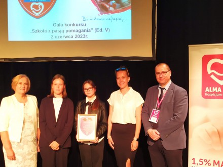 2 czerwca 2023 roku w Sali Teatralnej przy Parafii pw. Świętej Jadwigi Królowej w Krakowie odbyła się uroczysta gala podsumowująca tegoroczne dokonania społeczności szkolnych dla Alma Spei Hospicjum dla Dzieci w Krakowie. Podczas gali rozdane zostały certyfikaty „Szkoła z Pasją Pomagania”, a także podziękowania i wyróżnienia za najlepsze materiały dokumentujące zaangażowanie szkoły.