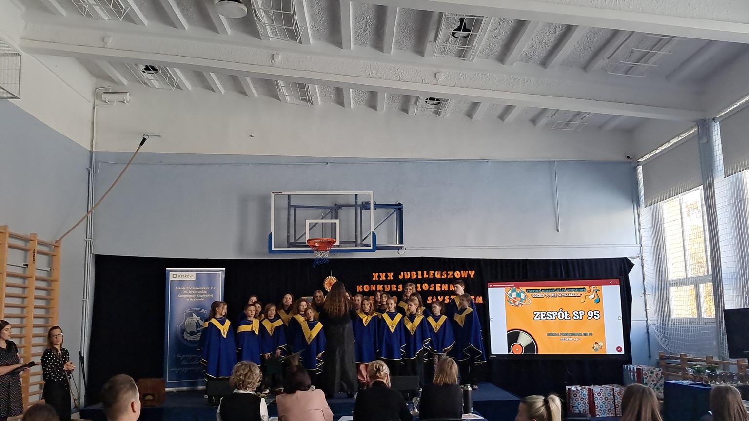 Chór SP 95 na XXX Jubileuszowym Międzyszkolnym Konkursie Piosenki „Gdzieś to kiedyś słyszałem”