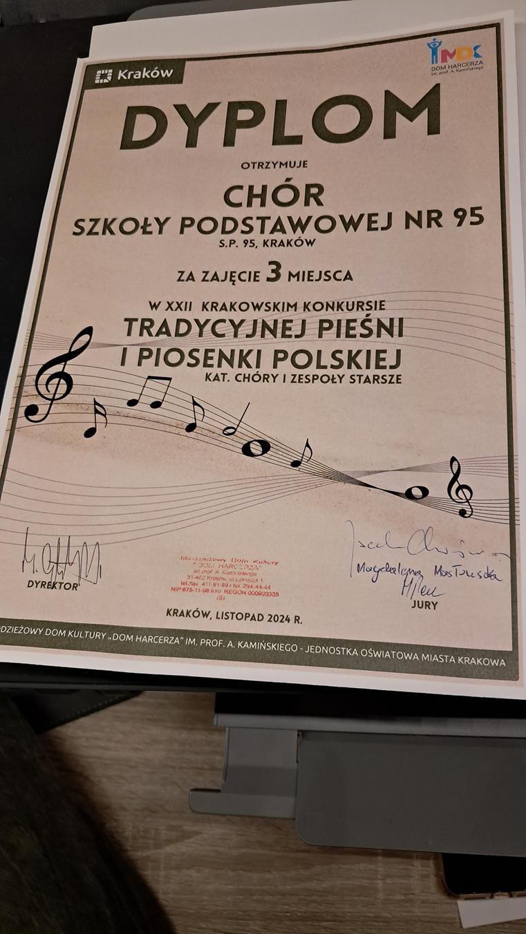 Chór SP95 na XXII Krakowskim Konkursie Tradycyjnej Pieśni i Piosenki Polskiej