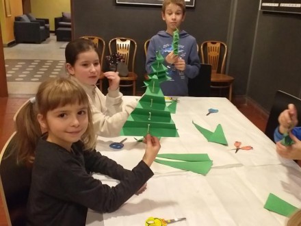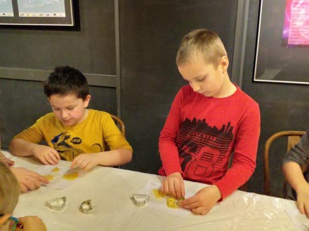 27 listopada uczniowie z klasy 2e uczestniczyli w warsztatach „Dookoła świata” w Staromiejskim Centrum Kultury. Podczas tych zajęć poprzez zabawę, zdjęcia, opowiadanie dzieci poznały tradycje i zwyczaje Świąt Bożego Narodzenia w różnych krajach świata. Rozwiązały krzyżówkę z wieloma hasłami, grały na instrumentach perkusyjnych, wykonały choinkę z papieru i kartkę świąteczną. Największą atrakcją było przyciskanie foremek do ciasta i robienie ciasteczek. Pani prowadząca upiekła te ciasteczka i dzieci mogły je zjeść na zakończenie zajęć. Wszystkim bardzo smakowały. Wycieczka była udana.