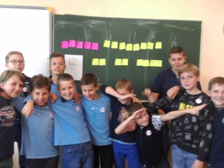 Takie życzenia i wiele innych niespodzianek, czekały na chłopców tych „małych” i tych „trochę większych” w dniu, w którym szczególnie doceniamy wszystkich Panów. Samorząd Uczniowski przygotował niespodzianki z okazji „Dnia Chłopaka”. Przedstawicielki żeńskiej części społeczności szkolnej przygotowały wiersze oraz krótki występ artystyczny, podczas którego przy dźwiękach legendarnego zespołu „Abba” odśpiewały i odtańczyły jeden z najbardziej znanych utworów „Mamma Mia”. Całości dopełniały różnobarwne, kolorowe stroje, które pomagały poczuć nastrój lat 70-80. Po występie oraz życzeniach, wykorzystując quiz wiedzy ogólnej, sprawdzono, jak Panowie orientują się w świecie nie tylko sportu. Quiz podzielony był na dwa stopnie trudności. Uczniowie klas młodszych odpowiadali na pytania o średnim stopniu zaawansowania a uczniowie klas starszych na pytania o stopniu zaawansowania wyższym. Panowie doskonale poradzili sobie z zadaniami, wygrywając przy tym słodkie upominki. Komu nie udało się zdobyć nagrody z pewnością poczuł się doceniony, a to za sprawą specjalnie przygotowanych orderów „Medali Superbohaterów”, które zostały wręczone Panom niezależnie od wieku, bo przecież każdy mężczyzna duży czy mały jest bohaterem. Każdy posiada własną osobowość i talent, o czym świadczyły napisy na przygotowanych koszulkach „Mistrzmatematyki”, „Mistrz szachów”. Z pewnością dla wszystkich był to wyjątkowy dzień. Dzień uśmiechu, radości i wyzwań przygotowanych przez Panie w każdej klasie.