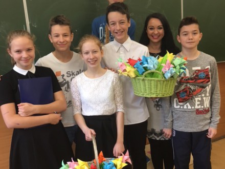 W dniu 13 października delegacja uczniowska wręczyła wykonane w technice origami kwiaty Dyrekcji oraz nauczycielom i pracownikom szkoły, a napisane wierszem życzenia przekazała za pomocą szkolnego radiowęzła.