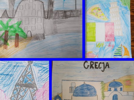 W ramach zadania uczniowie klasy I b zaprojektowali oryginalny polski strój dla maskotki unijnej – Syriusza, wykonali kolorowe wiatraczki w barwach Unii i samodzielnie przygotowali smakowite specjały kuchni europejskiej. Uczniowie klasy I d i III b przysłali z wirtualnej podróży, własnoręcznie wykonane pocztówki z krajów, które odwiedzili