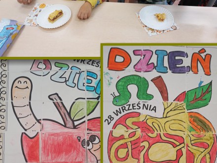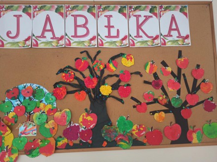 Uczniowie zbierali informacje na temat walorów odżywczych jabłek oraz tego pod jakimi postaciami możemy je spożywać. Dzieci w tym dniu pogłębiały wiadomości o cyklu rozwoju roślin, oglądały na zdjęciach etapy dojrzewania jabłka. Dowiedziały się również, jak wygląda praca w sadzie oraz jak powstaje sok jabłkowy. Każda klasa wykonała ciekawe prace z jabłkiem w roli głównej.