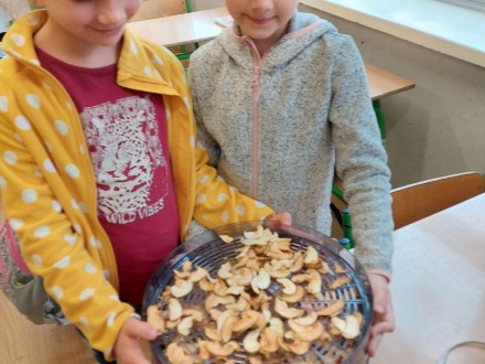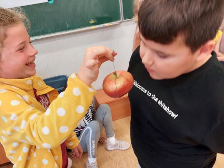 W trakcie zajęć uczniowie obejrzeli film edukacyjny o zaletach i walorach spożywania jabłek. Ponadto odbyły się zabawy zręcznościowe z jabłkami , konkursy wiedzy poszerzające wiedzę o jabłkach, sposobach ich przechowywania i przetworach z jabłek. Dodatkowo, na zajęciach dzieci rozwiązywały „matematyczne jabłuszka”, słuchały wierszy i piosenek o tematyce owocowej, rozwiązywały ciekawe quizy, spożywały mus jabłkowy. Poznały również sposób przygotowania suszonych owoców, a na zakończenie degustowały różne odmiany jabłek, sok jabłkowy, wspaniałe szarlotki, jabłeczniki, muffinki.