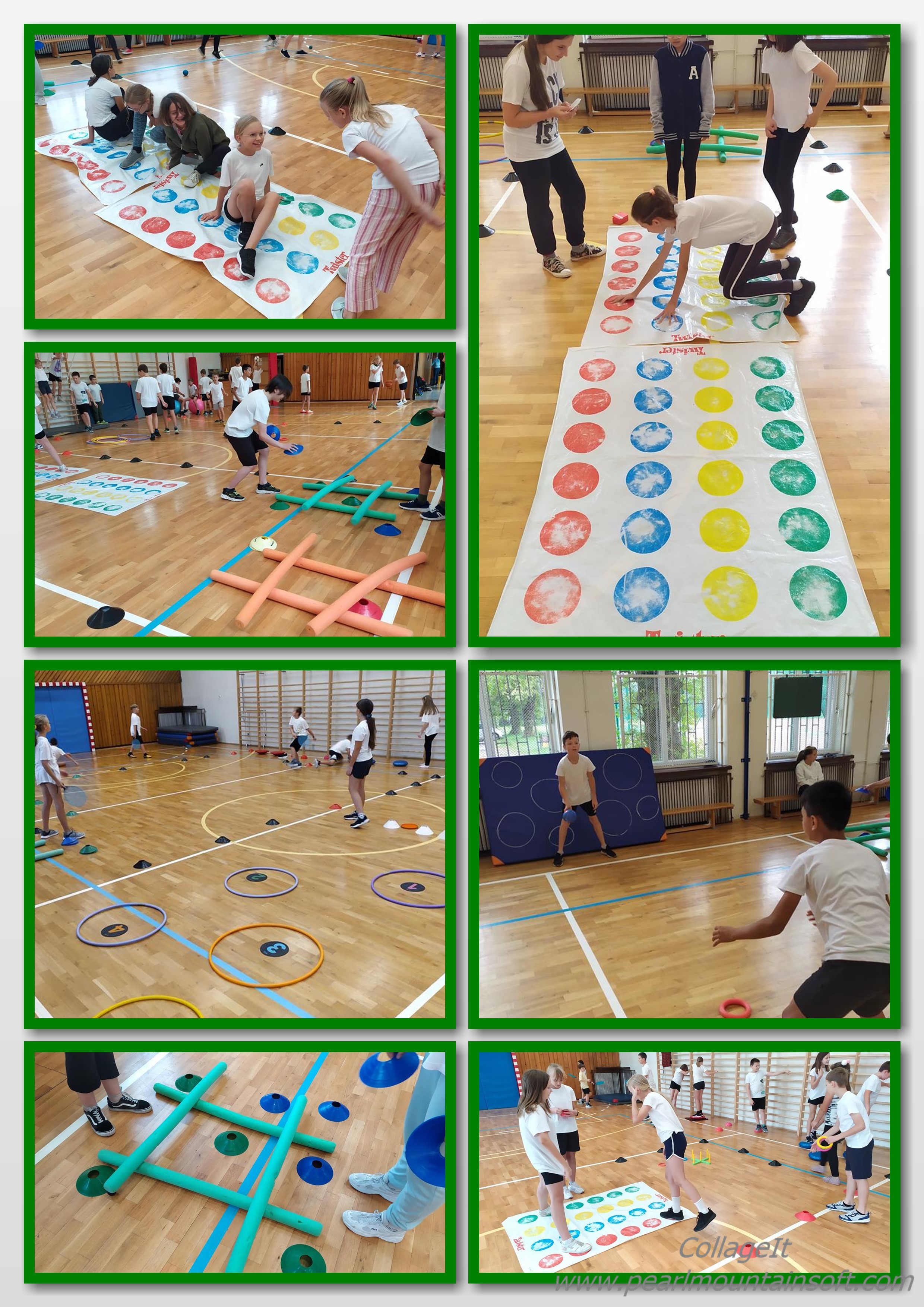 - na zajęciach wf uczniowie klas 5d, 5f, 4c, 6c, 8a, 8d, 5e, 5b i 4d grali w twistera, kółko-krzyżyk, kręcili hula hop, trafiali do celu oraz wykonywali inne sportowe zadania z wykorzystaniem piłek;