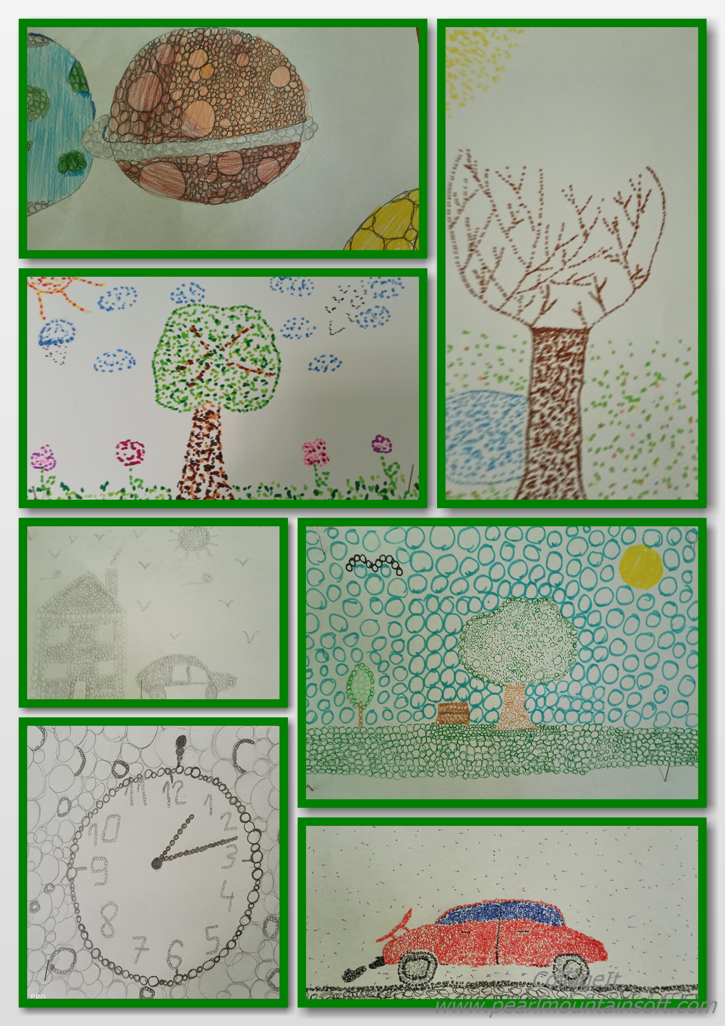 - na plastyce uczniowie klas 4b, 4d, 5d, 5e, 6a wykonywali kompozycje z wykorzystaniem kropek;