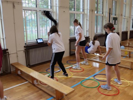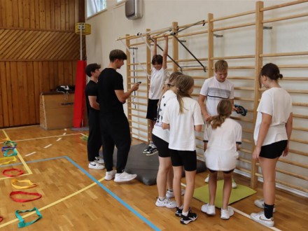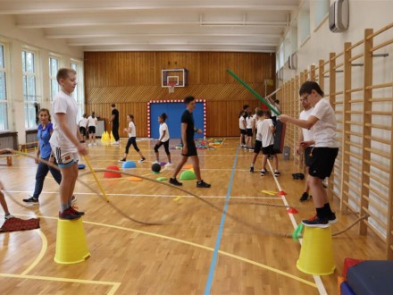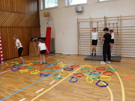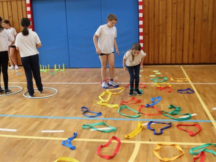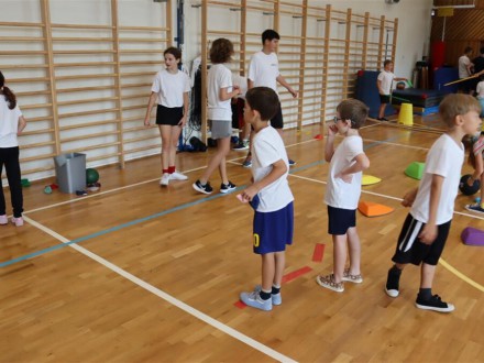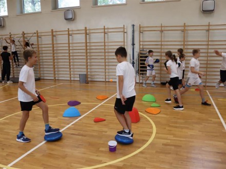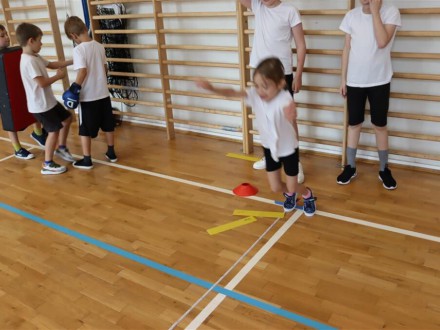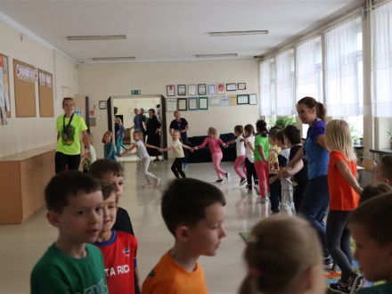 W klasach 4 - 8 podczas zajęć wychowania fizycznego uczniowie sprawdzali swoją sprawność na specjalnych stacjach (ćwiczenia celności, równowagi, siły, koordynacji wzrokowo-ruchowej). Dużym zainteresowaniem cieszyły się stacje z wykorzystaniem tabletów, na których ćwiczenia ruchowe można było wylosować na kole fortuny lub z talii kart.