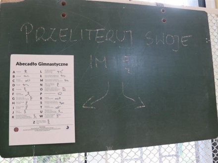 Niektóre stacje wymagały wykorzystania umiejętności matematycznych (sumowanie/mnożenie liczby oczek wyrzuconych na kostkach, odczytywanie długości skoku) oraz językowych (alfabet gimnastyczny).