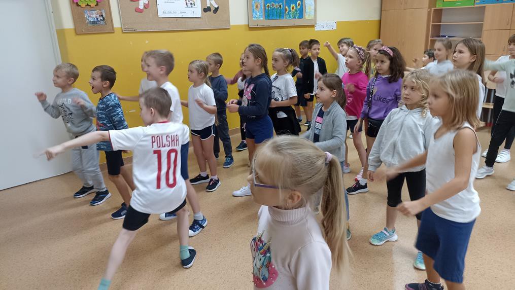 Dzieci w klasach młodszych w trakcie lekcji mieli okazję do zabaw ruchowych z Akademią Krokieta i Lamy. Uczniowie klas starszych podejmowali wyzwania sprawnościowe na lekcjach wychowania fizycznego (skok w dal z miejsca, podciągnięcia na drążku, utrzymanie pozycji plank oraz pompki) oraz aktywnie bawili się na stacjach ruchowych. Na dwóch długich przerwach w murach szkoły zabrzmiała taneczna muzyka, dzięki której wszystkie korytarze zamieniły się w taneczny parkiet.