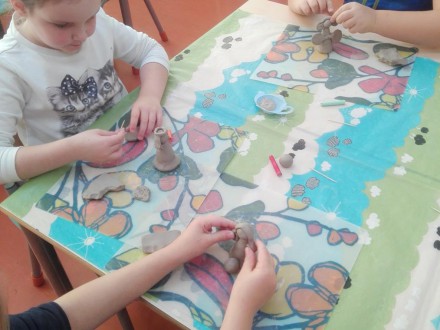 Klasa 1b już rozpoczęła przygotowania uczestnicząc w warsztatach ceramicznych. Uczniowie lepili z gliny aniołki- upominki dla bliskich. Wkrótce te małe cudeńka uzupełnią świąteczną dekorację w ich rodzinnych domach.