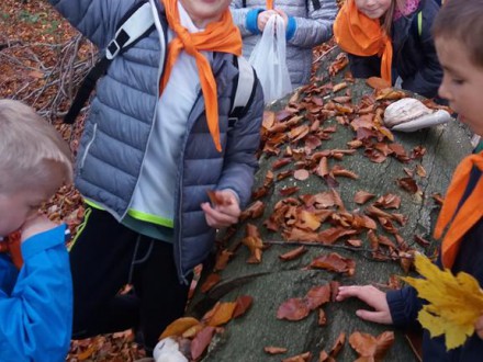 Las dostarczył nam wielu ciekawych wrażeń. Największą atrakcją było szukanie grzybów i zbieranie jesiennych liści. Był też czas na naukę: rozpoznawaliśmy drzewa, mierzyliśmy obwód pnia i notowaliśmy nasze obserwacje.