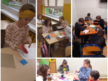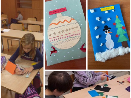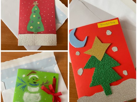W tym roku uczniowie własnoręcznie wykonywali kartki świąteczne z życzeniami, którymi obdarowane zostały instytucje współpracujące z SP 95.
