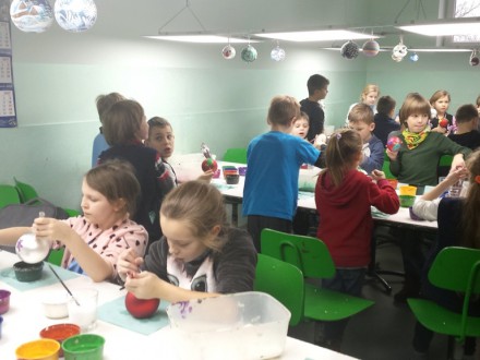 Uczestniczyli tam w warsztatach plastycznych, podczas których poznali sposoby dekoracji ozdób choinkowych i obejrzeli film instruktażowy. Podczas zwiedzania fabryki, przewodnik zapoznał dzieci z kolejnymi etapami tworzenia i produkcji ozdób. Na samodzielnie malowanych bombkach uczniowie stworzyli unikatowe, świąteczne obrazy. Bombki te stały się świątecznym upominkiem dla Rodziców.