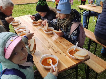 Niektórzy pokusili się o spróbowanie wojskowej zupy gulaszowej podanej prosto z polowej kuchni. Była pyszna i krzepiąca- akurat na chłodny dzień!