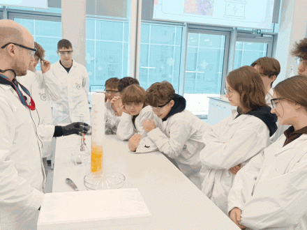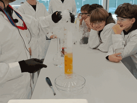 W Laboratorium Reakcji uczniowie uczestniczyli w lekcji chemii pt. Wszystko ma pH, odkrywamy tajemnice kwasów i zasad. Podczas warsztatów uczniowie poznali fascynujący świat chemii, budowę i właściwości kwasów oraz zasad. Dowiedzieli się, czym jest odczyn roztworu, skala pH oraz wskaźniki chemiczne.W grupach dwuosobowych uczniowie przeprowadzili eksperymenty z użyciem różnorodnych odczynników, obserwując zmiany barw i reakcje chemiczne. Obserwowali również bardziej złożone i trudniejsze doświadczenia związane z badaniem pH przeprowadzane przez edukatorów Cogiteonu.