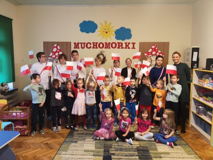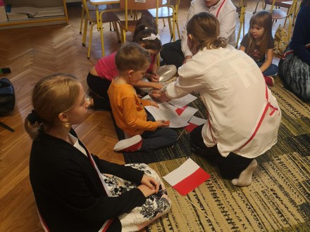 Po raz kolejny uczniowie naszej szkoły wzięli udział w akcji prowadzonej w ramach projektu „Biało-Czerwona dla Przedszkolaka”. Uczniowie klas 7 odwiedzili dzieci w pobliskich przedszkola. Przygotowali zajęcia edukacyjne, w trakcie których zapoznali młodszych kolegów z historią Godła Polski. Klasa 7b spotkała się z dziećmi z Przedszkola 123, a uczniowie klasy 7c odwiedzili dzieci z Przedszkola nr 14. Zajęcia bardzo się dzieciom podobały, tym bardziej, że uczniowie zaproponowali także wspólną zabawę. Siódmoklasiści zapowiedzieli, że nie jest to ostatnia wizyta. Zatem - do zobaczenia.