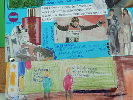 Każdy uczeń otrzymał zestaw sentencji matematycznych do wyboru, z których jedna stała się przedmiotem jego pracy. Uczeń ilustrował sentencję odpowiednio dobranymi obrazkami, które wykonywał samodzielnie lub też wycinał i komponował w formie kolażu. Sentencje, które mogli wybrać uczniowie do swojej pracy, zostały ułożone przez nauczyciela matematyki. Wielu uczniów wzbogaciło projekt swoimi osobistymi przemyśleniami na temat wybranej sentencji. Wszystkie prace zostały ocenione i wyeksponowane na tablicy korytarza szkolnego na pierwszym piętrze. Szczególnego podkreślenia wymaga fakt, że większość pięknych ilustracji została wykonana samodzielnie przez autorów prac. Zapraszamy do oglądania projektów klasy 5 d.