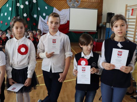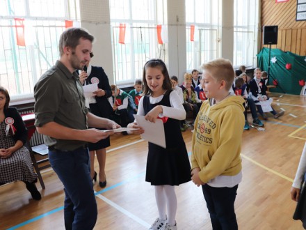 Uczniowie klas V mieli rzadką okazję wcielenia się w ważne osobistości związane z odzyskaniem przez Polskę niepodległości. W krótkich 1-2 minutowych filmikach starali się opowiedzieć o swoich dokonaniach. Uczniowie wykazali się wielką wyobraźnią: mieliśmy bohaterów oczywistych jak Józef Piłsudski, Józef Haller ale pojawili się również inne osoby jak dr Rafał Radziwiłowicz (uczył Piłsudskiego jak udawać obłęd), a nawet …. Kasztanka. Zwycięzcami konkursu zostali Ola Braja i Tomek Labiś z 5d za fantastyczny wywiad pod pomnikiem Piłsudskiego. W piątek, 9 listopada, wszystkie filmiki doczekały się oficjalnej premiery i zostały zaprezentowane na korytarzu naszej szkoły. Publiczność dopisała! Wszyscy aktorzy występujący w filmikach, jak również operatorzy kamer/komórek mogą być z siebie dumni. Dziękujemy za zaangażowanie.