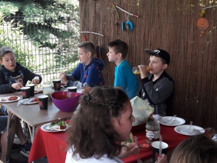 Oczywiście wstąpiliśmy tez do Niezwojowic. To dobrze nam znane miejsce, czyli Gospodarstwo Edukacyjne "Pszczółki". Tam piekliśmy kiełbaski, podziwialiśmy panoramę wsi na wiosnę i bawiliśmy się, jak przystało na prawdziwą majówkę. To była udana wycieczka, dostarczyła nam wielu wrażeń.