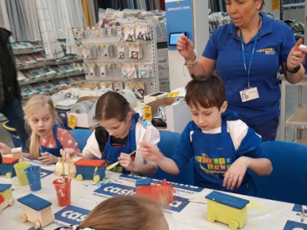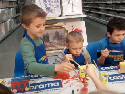 W dniu 26 lutego 2020r. uczniowie klasy 2d udali się do Castoramy w Bronowicach, aby wziąć udział w warsztatach "Majsterkowo". Po przybyciu na miejsce pracy, każdy uczeń otrzymał fartuszek, który miał chronić ubranie przed zabrudzeniem. Następnie dzieci otrzymały drewniane modele lokomotywy i wagonika. Zadaniem uczniów, było sklejenie, zbicie gwoździkami modelu pociągu. Praca była niezwykle zajmująca i każde dziecko z niewielką pomocą pań zdołało ją wykonać. Następnie mali konstruktorzy otrzymali farby akrylowe, którymi wymalowali swoje pociągi. Efekt był wspaniały, a w nagrodę każde dziecko mogło zabrać swój pociąg do domu, aby pochwalić się Rodzicom.