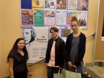 W trakcie finału konkursu, który odbył się 5. 10. 2018 r . w Centrum Kultury Podgórze, uczniowie mieli zaszczyt poznać panią Danutę Grechutę - żonę Marka Grechuty.