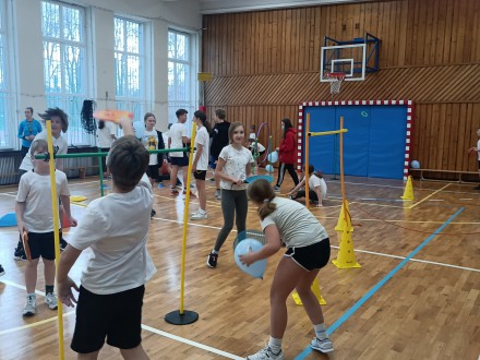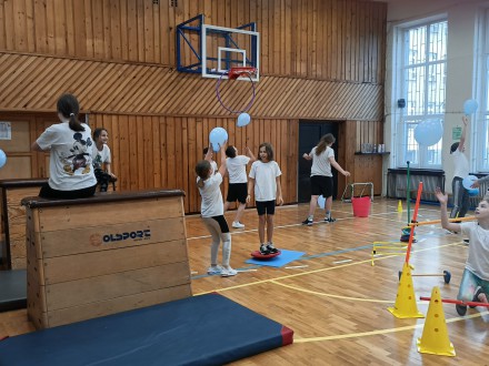 Korytarze parteru i I pietra zostały udekorowane na niebiesko - niebieskie girlandy z bibuły zwieszone na żyłkach z sufitu. Została wykonana gazetka ścienna dotycząca Praw Dziecka. Uczniowie w tym dniu przybyli do szkoły ubrani na niebiesko. Na wszystkich lekcjach wychowania fizycznego przeprowadzona została tzw. niebieska lekcja - gry i zabawy z niebieskimi balonami, tory przeszkód, mini rywalizacja wszystko w rytm muzyki.