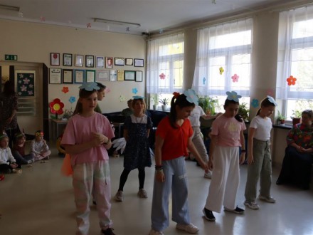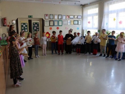 W projekcie związanym z obchodami tego radosnego święta wzięła udział cała społeczność szkolna. Dzieci z klas 1-3 przygotowały elementy dekoracji, dzięki czemu korytarz parteru zamienił się w kwiatową łąkę. Uczniowie klas starszych udekorowali kwiatami pozostałe korytarze i klatki schodowe. Rozwieszone zostały także plansze z okolicznościowymi sentencjami. Przygotowano gazetkę tematyczną.