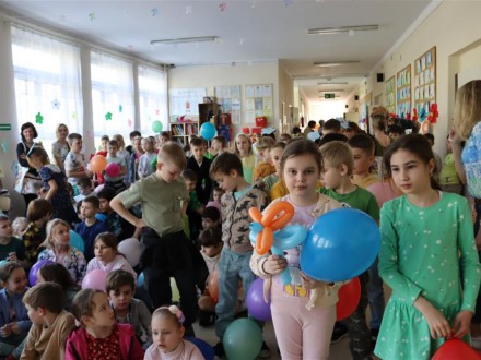 Następnie, na korytarzu parteru, klasa I a zaprezentowała program artystyczny „Piosenką witamy wiosnę”. Wiersze, piosenki, tańce i zagadki w wykonaniu pierwszoklasistów zachwyciły i rozbawiły publiczność. Wiosenne piosenki zaprezentowali również uczniowie klas drugich i trzecich, a uczennice klasy 3a wykonały żywiołowy taniec.