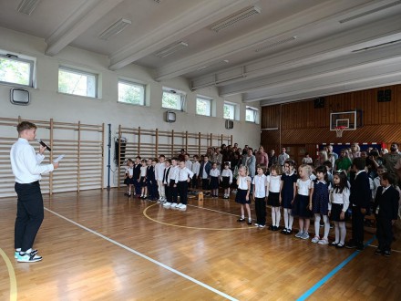 Uroczysty charakter miało rozpoczęcie roku dla najmłodszych uczniów. Pierwszoklasiści wraz z rodzicami zgromadzili się w sali gimnastycznej. Po odśpiewaniu hymnu głos zabrała dyrektor Anna Hanusiak, która powitała wszystkich obecnych. Życzyła dzieciom, że każdy dzień w szkole był wspaniałą przygodą, by się nauczyli wielu ciekawych i potrzebnych rzeczy, ale także by tu dobrze się bawili i znaleźli kolegów i przyjaciół. Zwracając się do rodziców, podkreśliła, że to rodzice są pierwszymi nauczycielami i wychowawcami swoich dzieci. Szkoła zrobi wszystko, aby ich w tej roli wspierać. Wyraziła też nadzieję, że zaangażowanie rodziców i ich współpraca z nauczycielami będą służyły dzieciom, aby wyrastały na dobrych i mądrych ludzi.Na koniec uroczystości, po raz 64 w historii szkoły, rozległ się dzwonek, który rozpoczął rok szkolny 2025/2026.