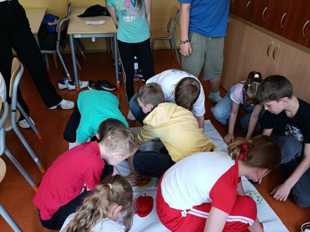 W maju i w czerwcu klasy trzecie uczestniczyły w cyklu spotkań warsztatowych prowadzonych przez studentki Wydział Technologii Żywności kierunek Dietetyka. Celem zajęć było zwiększenie u dzieci świadomości na temat zasad zdrowego odżywiania, rozwijanie umiejętności wyboru zdrowych produktów i właściwego komponowania posiłków, zachęcenie do aktywności fizycznej i higienicznego trybu życia. Zajęcia były prowadzone w ciekawej dla uczniów formie. Aktywizowały ich poprzez zabawy, działania praktyczne, eksperymenty i ćwiczenia ruchowe. Zajęcia bardzo się dzieciom podobały. Poszerzyły wiedzę uczniów, a przede wszystkim uświadomiły dzieciom jak ważna dla zdrowia każdego człowieka jest właściwa dieta, która zależy od naszych codziennych wyborów żywieniowych.