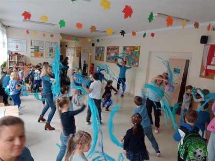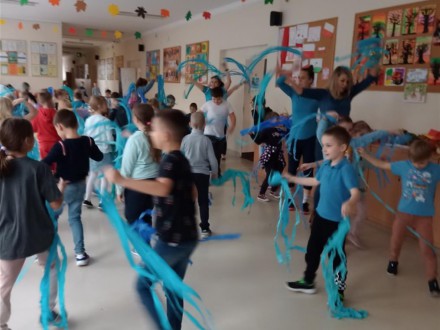 - uczniowie wszystkich klas ubrani byli na niebiesko,