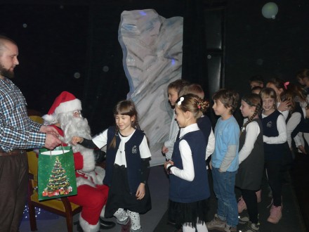 11 grudnia 2017r. klasa 3b i 3e wybrały się na spektakl pt.: ,,Opowieści z lodowej krainy’’ w wykonaniu aktorów z Teatru Współczesnego w Krakowie. Przedstawienie było dedykowane miłośnikom filmu animowanego ,,Kraina Lodu’’. Dzieci, które doskonale znają bohaterów tego filmu, mogli ponownie wraz z Olafem, Elzą, Anną i Krisem przeżyć wspaniałą przygodę. W spektaklu szczególnie urzekła widzów gra świateł, dekoracje, piękne kostiumy oraz niezwykłe efekty dźwiękowe. Spektakl wzbudził wiele pozytywnych emocji, dzieci zadowolone i wzruszone czekały na kolejną niespodziankę - spotkanie z Mikołajem. To było niezwykłe przeżycie, a drobne upominki bardzo ucieszyły dzieci.