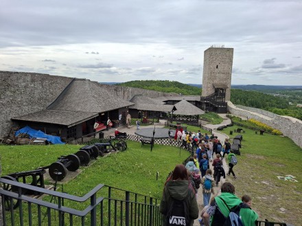 Następnie grupa udała się do Chęcin, gdzie zwiedzano ruiny zamku. Uczniowie wspięli się na basztę, skąd mogli podziwiać malowniczą panoramę okolicy. Przewodnik opowiadał ciekawe legendy związane z zamkiem, co jeszcze bardziej rozbudziło wyobraźnię uczniów.