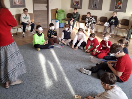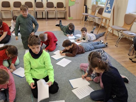 W dniu 7 01.2025 r. klasa 3 b. uczestniczyła w kolejnych warsztatach z cyklu „Podaruj chwilę”. Uczniowie na poprzednich zajęciach dowiedzieli się jaką rolę odgrywa dotyk w przypadku złego funkcjonowania wzroku, jakie możliwości poznawania świata mają osoby niewidzące i słabowidzące. Na tych warsztatach dzieci miały możliwość zapoznać się z pismem Braille’a. Z wykorzystaniem specjalnych tabliczek oraz plansz przedstawiających znaki literowe i cyfry zapisywały swoje imiona. Udział w tego typu zajęciach na pewno przyczynił się do lepszego zrozumienia problemów życia codziennego osób z niepełnosprawnością wzrokową.