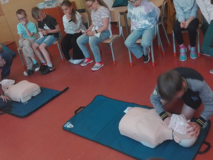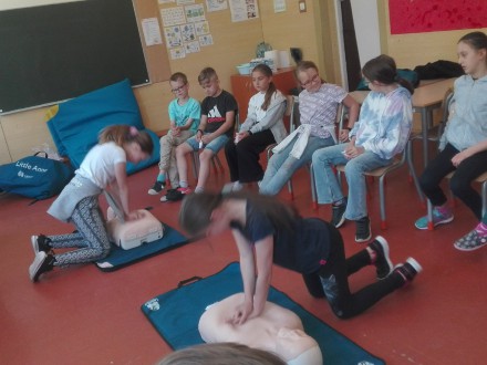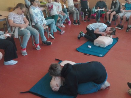 Uczniowie klasy 3d, kolejny już raz, uczestniczyli w zajęciach warsztatowych dotyczących udzielania pierwszej pomocy przedmedycznej. W myśl zasady „trening czyni mistrza” doskonalili związane z nią procedury. Na fantomach ćwiczyli RKO, natomiast na rówieśnikach- układanie poszkodowanego w pozycji bocznej ustalonej, znanej powszechnie jako pozycja bezpieczna. Utrwalili również znajomość numerów alarmowych oraz umiejętność wzywania fachowej pomocy medycznej. Trzeba przyznać, że bardzo dobrze poradzili sobie z postawionymi zadaniami.
