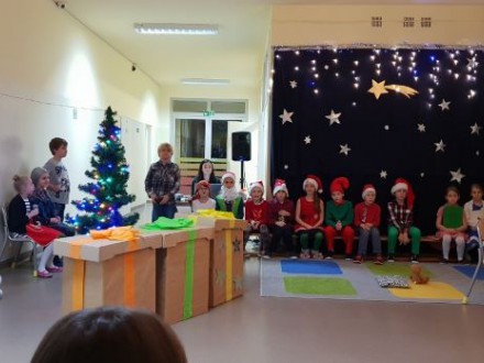 Tuż przed świąteczną przerwą, 18.12 Kolegom z klas I-III, a 19.12. Rodzicom, klasa 2b zaprezentowała przedstawienie pt. „Ratujmy święta”. Z powodu niegrzecznego zachowania dzieci istniało zagrożenie, że święta się nie odbędą. Dzięki mądrości płynącej z książek i bajkowym postaciom, które ożyły i pomogły niesfornym braciom dostrzec swoje błędy, udało się zapobiec katastrofie. Bohaterowie inscenizacji zrozumieli, że muszą zmienić swoje zachowanie. Obiecali, że będą szanować i słuchać swoich rodziców, będą się nawzajem wspierać i zgodnie współpracować oraz pomagać w domu. Święta zostały uratowane. Spektakl, w którym oprócz Chłopców, Mikołaja i postaci z bajek, wystąpiły również Elfy, gadające Bombki, Babcia, Mama, Wróżka rozbawił publiczność i został nagrodzony gromkimi brawami.