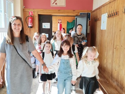 1 września po raz sześćdziesiąty zabrzmiał w naszej szkole dzwonek rozpoczynający kolejny rok szkolny. Szczególnie uroczysty charakter miało powitanie uczniów klas pierwszych. Uroczystość rozpoczęła się od wprowadzenia sztandaru szkoły i odśpiewania hymnu. Następnie pani dyrektor Anna Hanusiak powitała najmłodszych uczniów. Życzyła im, aby pobyt w szkole był dla nich przygodą, aby zdobyli wiele ciekawych doświadczeń , odkryli wiele tajemnic świata i znaleźli w murach szkoły wielu przyjaciół. Zwracając się do rodziców podkreśliła znaczenie wzajemnego szacunku i podejmowanie współpracy dla zapewnienia dzieciom jak najlepszego rozwoju. Nauczycielom życzyła owocnej, przynoszącej radość i satysfakcję pracy. Dzwonek oznajmił rozpoczęcie nowego roku szkolnego, po czym uczniowie pod opieką wychowawczyń udali się do swoich klas.