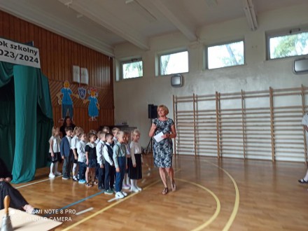 4 września br., kolejny raz po dwumiesięcznej przerwie, wypełniły się gwarem szkolne sale i korytarze. Uśmiechnięci i wypoczęci uczniowie witali się z kolegami i nauczycielami. Rozpoczął się nowy rok szkolny. Szczególnie uroczysty charakter miało powitanie tych, którzy po raz pierwszy jako uczniowie przekroczyli próg szkoły. Pierwszoklasiści wraz z rodzicami zgromadzili się w sali gimnastycznej. Najpierw Uczniów powitali koledzy ze starszych klas. W obecności Pocztu Sztandarowego odśpiewano hymn. Następnie zabrała głos pani dyrektor Anna Hanusiak. Życzyła Pierwszakom, aby zdobywanie wiedzy i umiejętności było ciekawą przygodą, a przede wszystkim, aby znaleźli w szkole kolegów i przyjaciół. Zapewniła, że szkoła to przyjazne miejsce, gdzie nie czasu na nudę. Potem zabrzmiał pierwszy dzwonek i uczniowie, pod opieką wychowawczyń, udali się do klas.