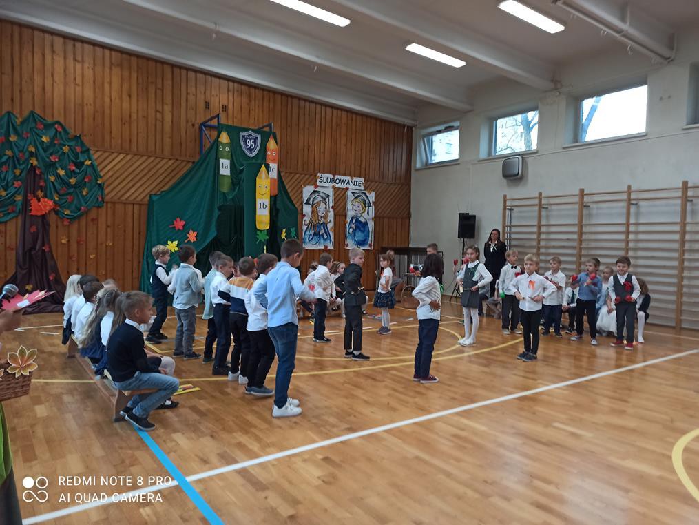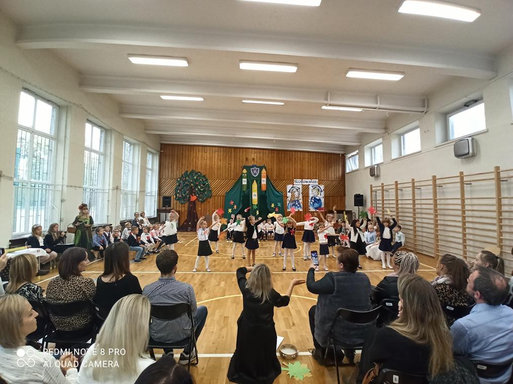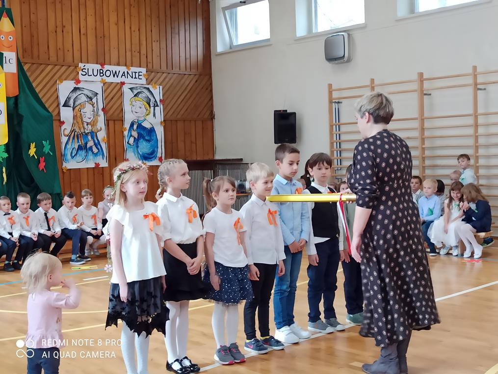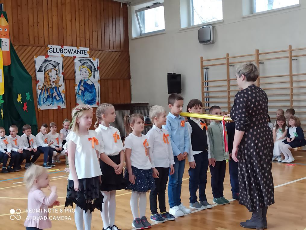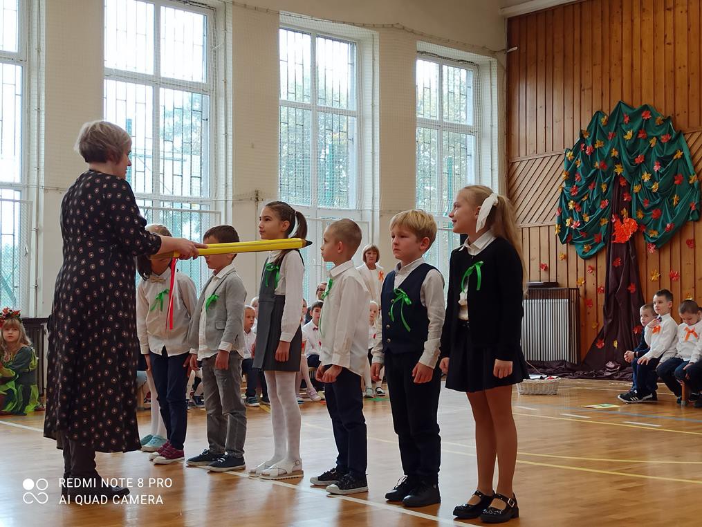 26 października br. odbyła się w naszej szkole tradycyjna uroczystość „Ślubowania”. Do tego wydarzenia uczniowie klas pierwszych przygotowywali się przez kilka tygodni. W obecności rodziców i bliskich zaprezentowali, przygotowany pod opieką wychowawczyń, program artystyczny. Pani Jesień przeprowadziła egzamin, w trakcie którego dzieci udowodniły, że z potrafią recytować, śpiewać, tańczyć i akompaniować na instrumentach perkusyjnych. Występy podobały się publiczności, która nagradzała artystów gromkimi brawami. W dalszej części uroczystości, w obecności Pocztu Sztandarowego Szkoły, uczniowie złożyli uroczyste ślubowanie. Pierwszoklasiści przyrzekali dbać o dobre imię swojej klasy i szkoły oraz pilnie się uczyć. Przyrzekali, starać się być dobrymi kolegami, a swym zachowaniem i nauką sprawiać radość rodzicom i nauczycielom. Również rodzice przyrzekli, że będą wspierać dzieci i pomagać im, aby wyrosły na mądrych i dobrych ludzi.