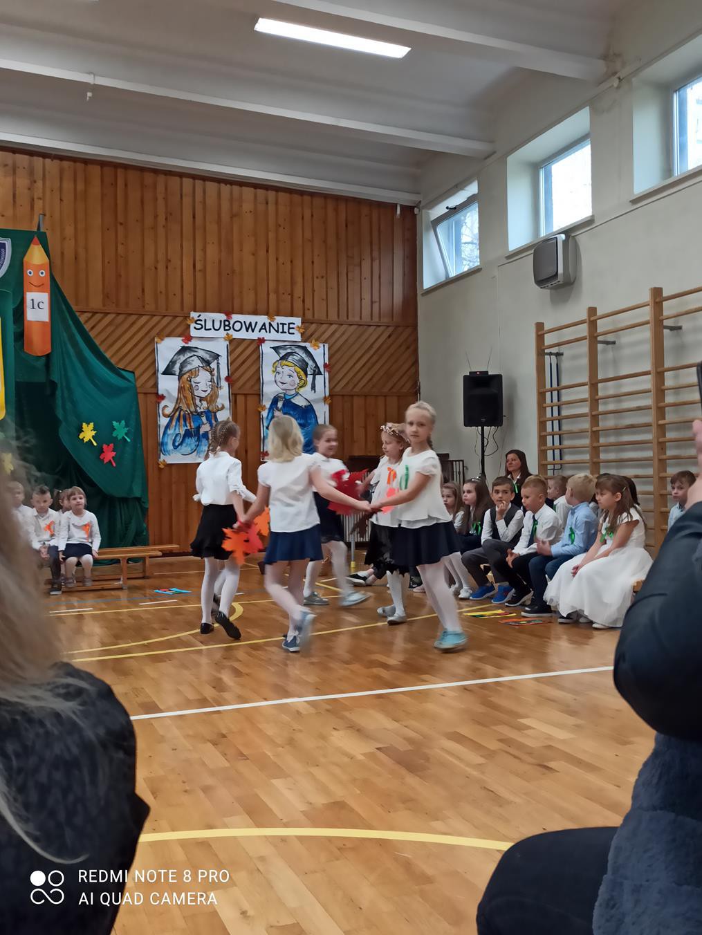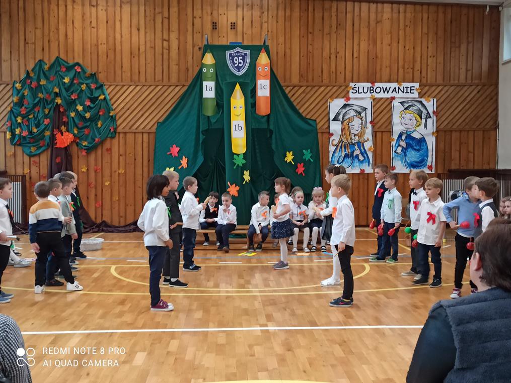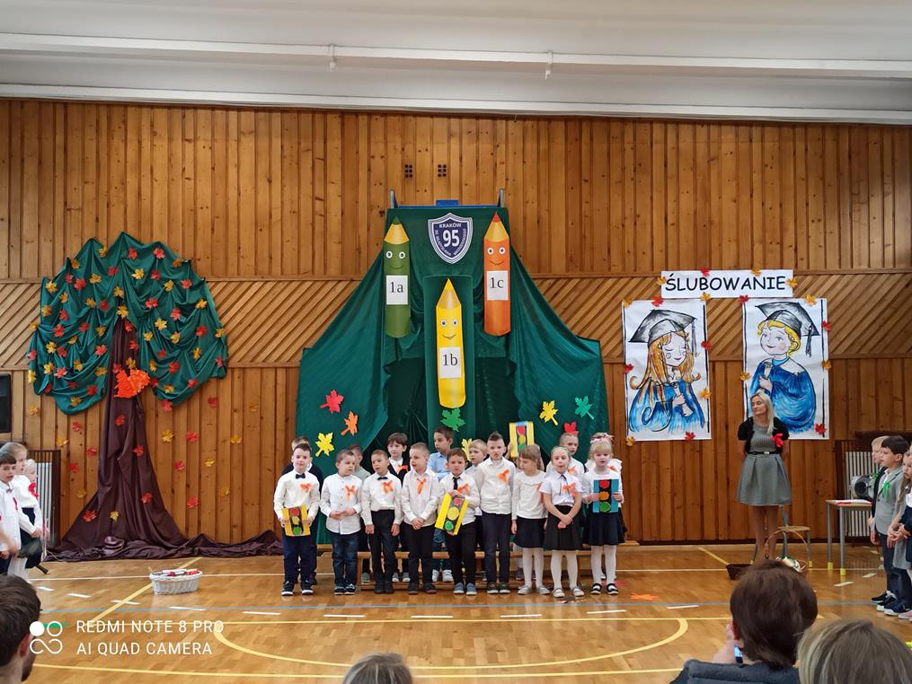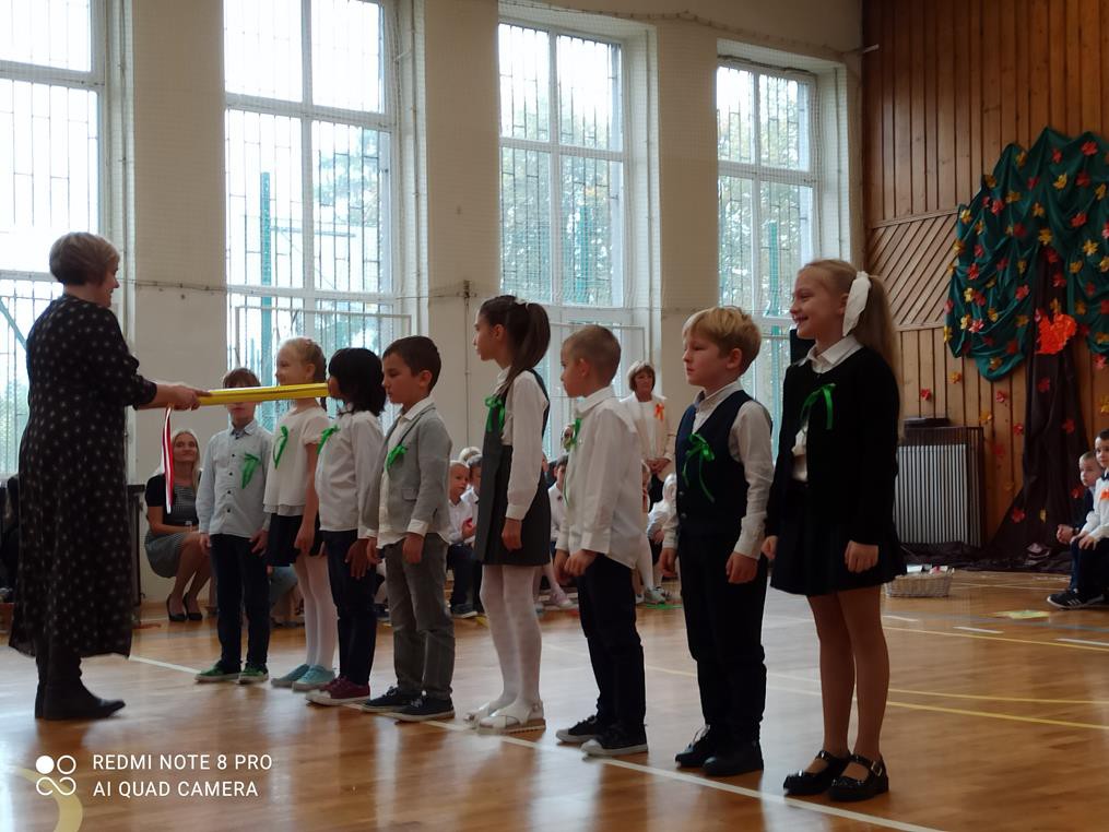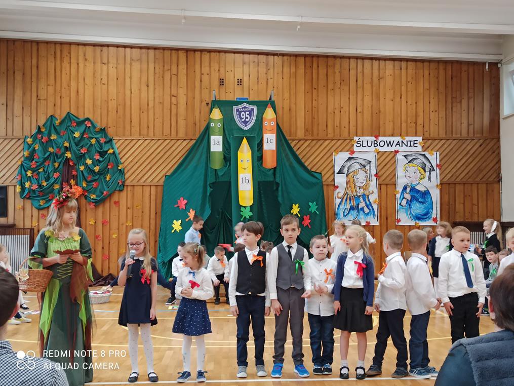 26 października br. odbyła się w naszej szkole tradycyjna uroczystość „Ślubowania”. Do tego wydarzenia uczniowie klas pierwszych przygotowywali się przez kilka tygodni. W obecności rodziców i bliskich zaprezentowali, przygotowany pod opieką wychowawczyń, program artystyczny. Pani Jesień przeprowadziła egzamin, w trakcie którego dzieci udowodniły, że z potrafią recytować, śpiewać, tańczyć i akompaniować na instrumentach perkusyjnych. Występy podobały się publiczności, która nagradzała artystów gromkimi brawami. W dalszej części uroczystości, w obecności Pocztu Sztandarowego Szkoły, uczniowie złożyli uroczyste ślubowanie. Pierwszoklasiści przyrzekali dbać o dobre imię swojej klasy i szkoły oraz pilnie się uczyć. Przyrzekali, starać się być dobrymi kolegami, a swym zachowaniem i nauką sprawiać radość rodzicom i nauczycielom. Również rodzice przyrzekli, że będą wspierać dzieci i pomagać im, aby wyrosły na mądrych i dobrych ludzi.